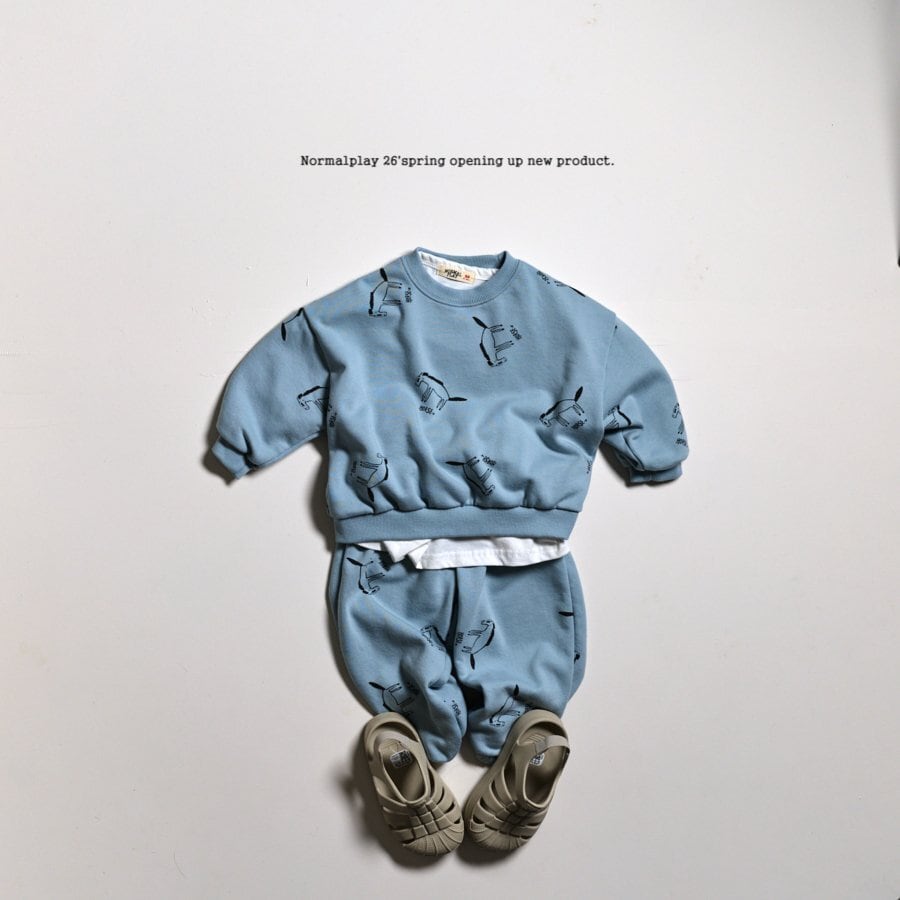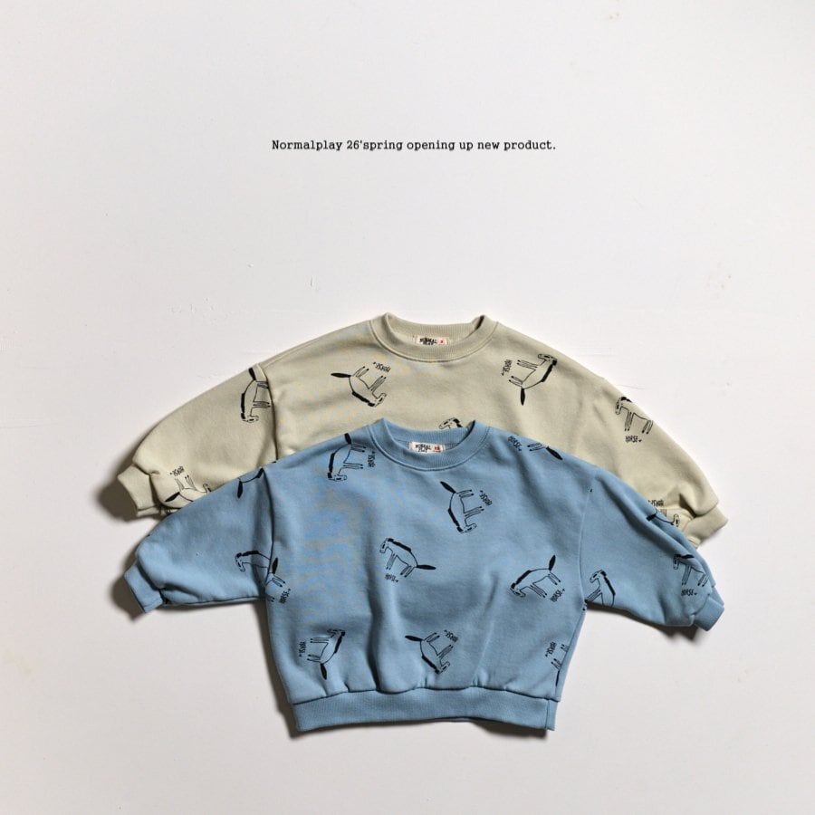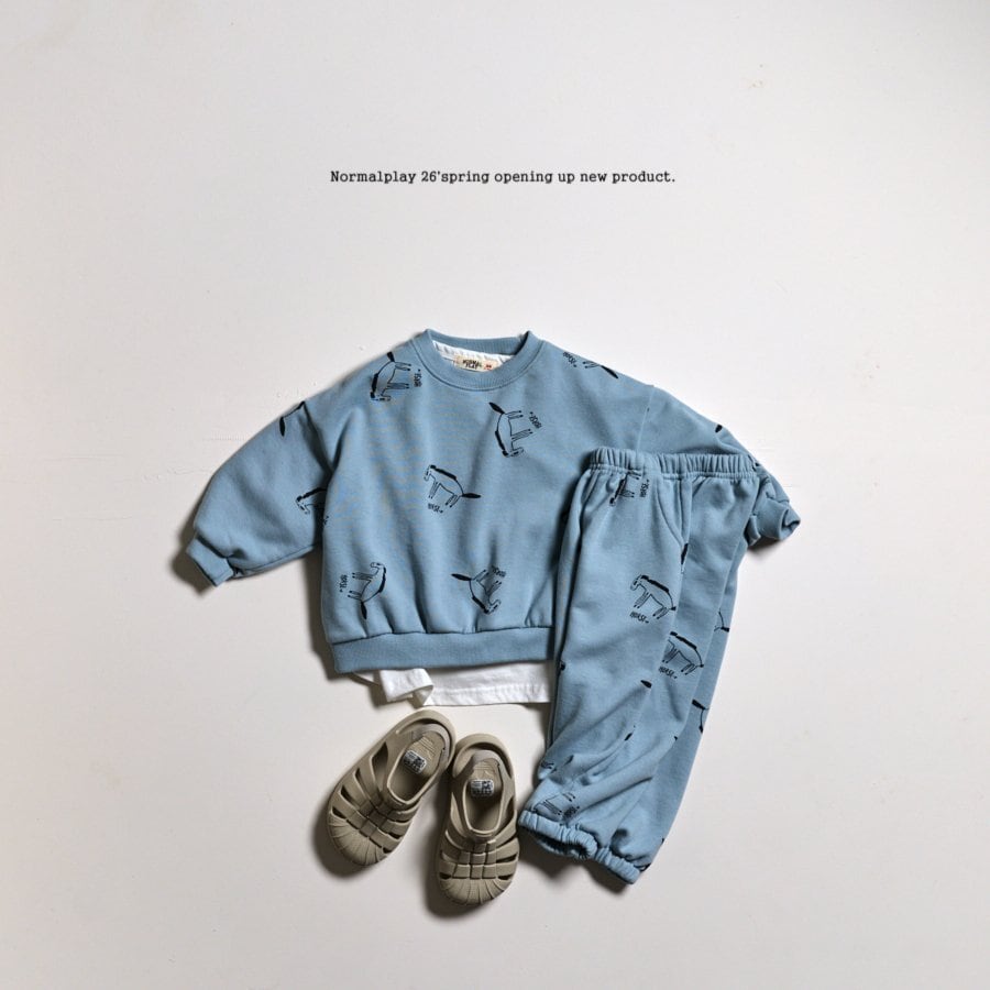 手描き風のホース(馬)プリントが散りばめられた、こなれ感たっぷりのスウェットセットアップです。