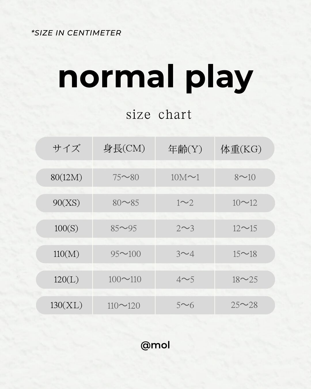 105cm / 17kg(Lサイズ着用・ゆったりめ)