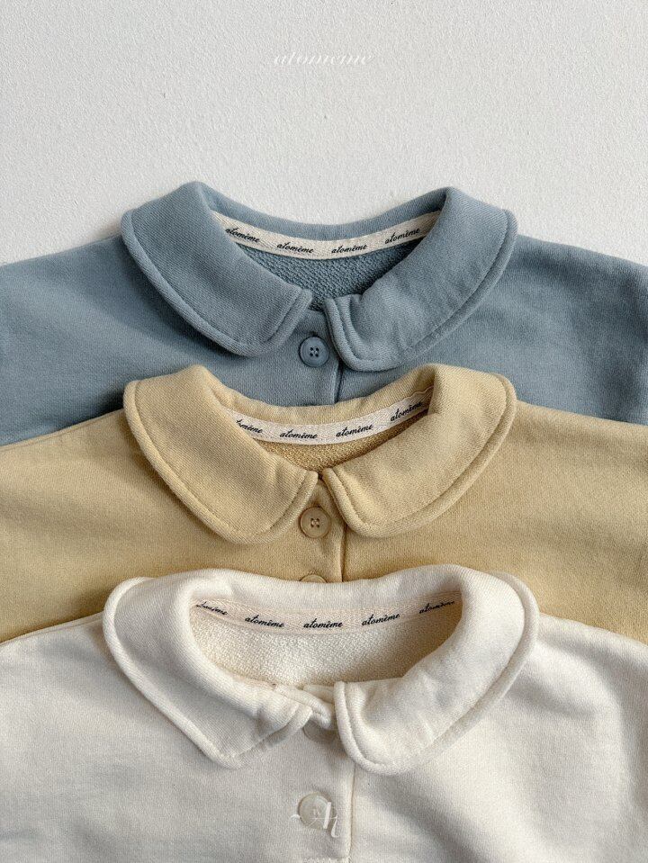 丸襟とボタンのディテールが上品な、裏毛素材のスウェットトップス。通園・通学にもぴったりな程よい厚みで、春先の主役になる一枚です。