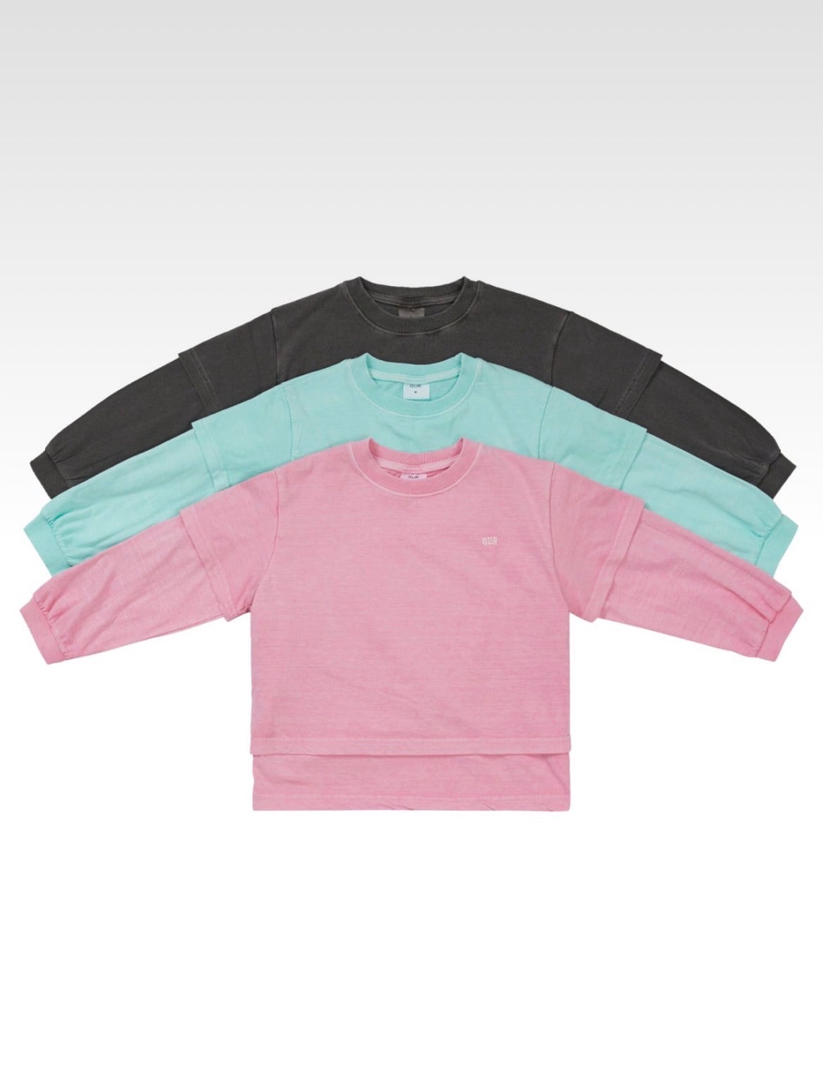 一枚で上級者見えするレイヤード風デザインと、ourらしい絶妙なピグメント加工が魅力。