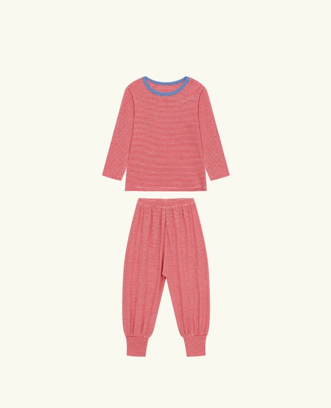 しっとり、もっちりとした極上の肌触り。コットンとモダールの黄金比率で、お子様の繊細な肌を優しく包み込むストライプラウンジウェアです。