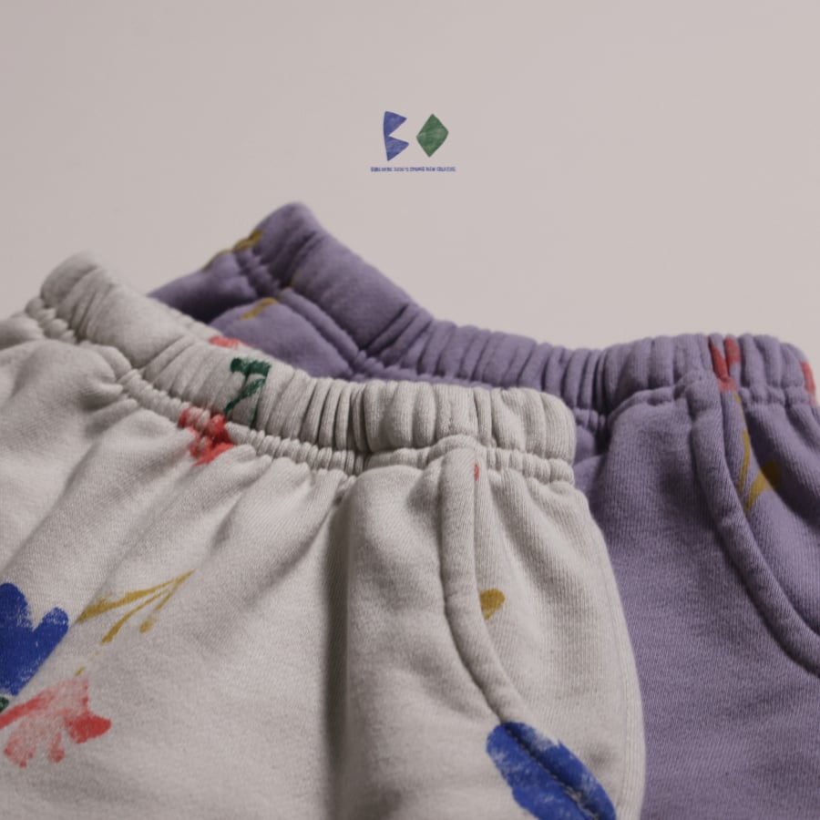 パッと目を引くカラーリングと、全面のフラワー柄が魅力的なセットアップ。ふんわりと柔らかい「チュリ(裏毛)」素材を使用しており、肌触りがよく快適に過ごせます。