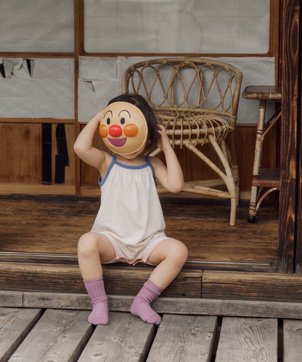 伸縮性があり、オムツ替えも楽々なスナップ付き。元気に動き回るベビーに寄り添う優しい素材です 。