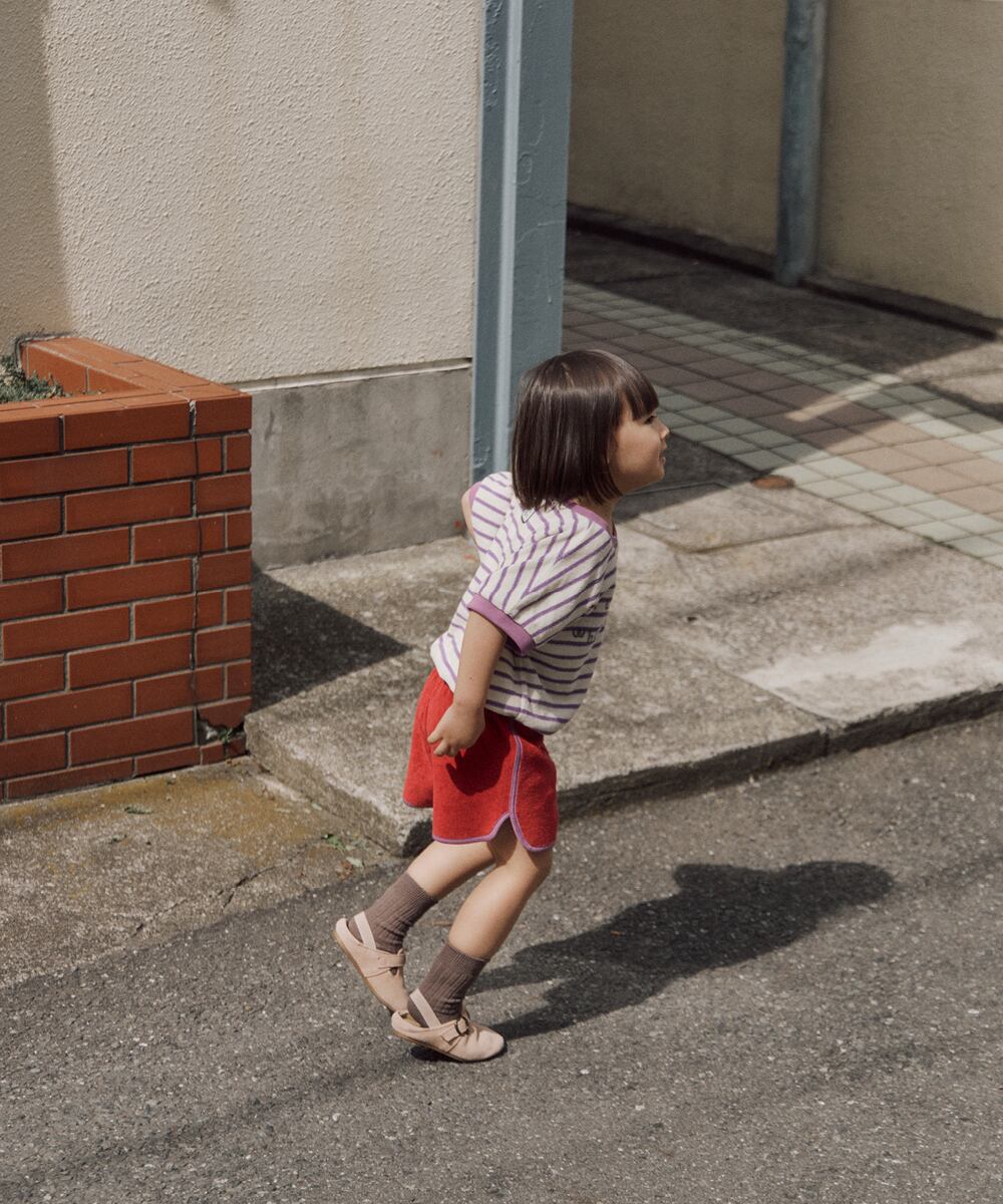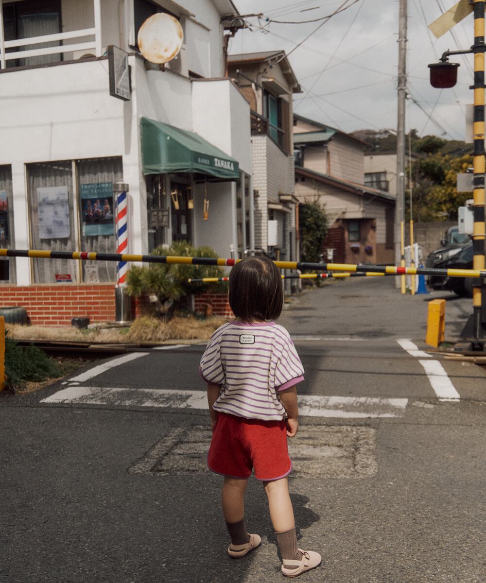 パイルのようなテリー素材が今っぽくておしゃれ。こなれた雰囲気が出るので、カジュアルなボトムスと合わせるだけで、都会的なキッズコーデが完成します 。