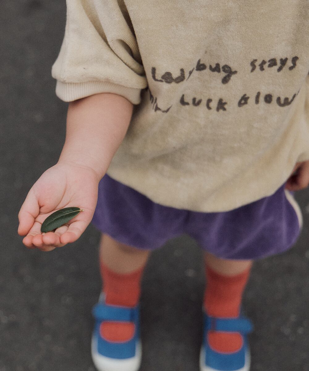 ポスッとした独特の質感が魅力。汗を吸いやすく、お洗濯しても乾きやすいのがママには嬉しいポイント 。