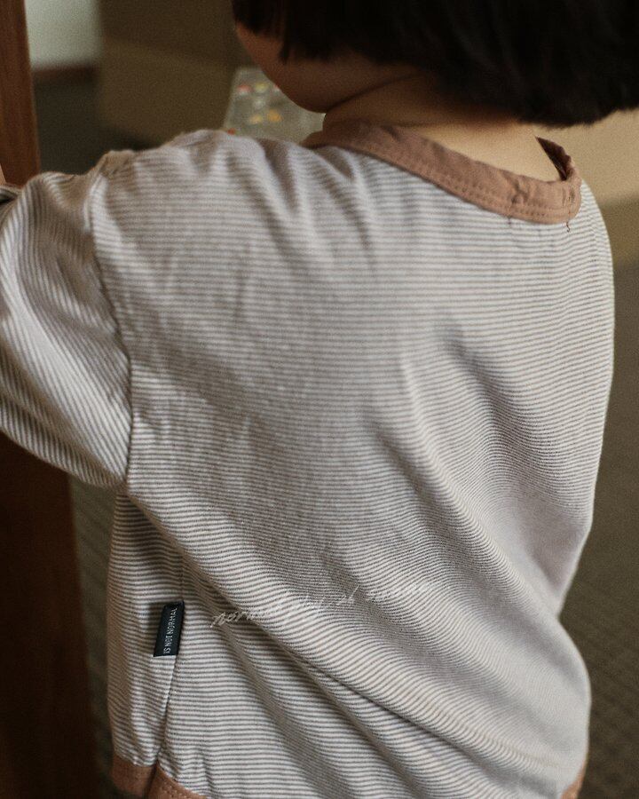 繊細な細ストライプに、首元や袖口のバイカラーが映える洗練された1枚。ウォッシュ加工済みで型崩れしにくく、忙しいママも気兼ねなく洗濯機で洗えるのが嬉しいポイント!デイリーコーデの質をさりげなく上げてくれるお守りアイテムです♩
