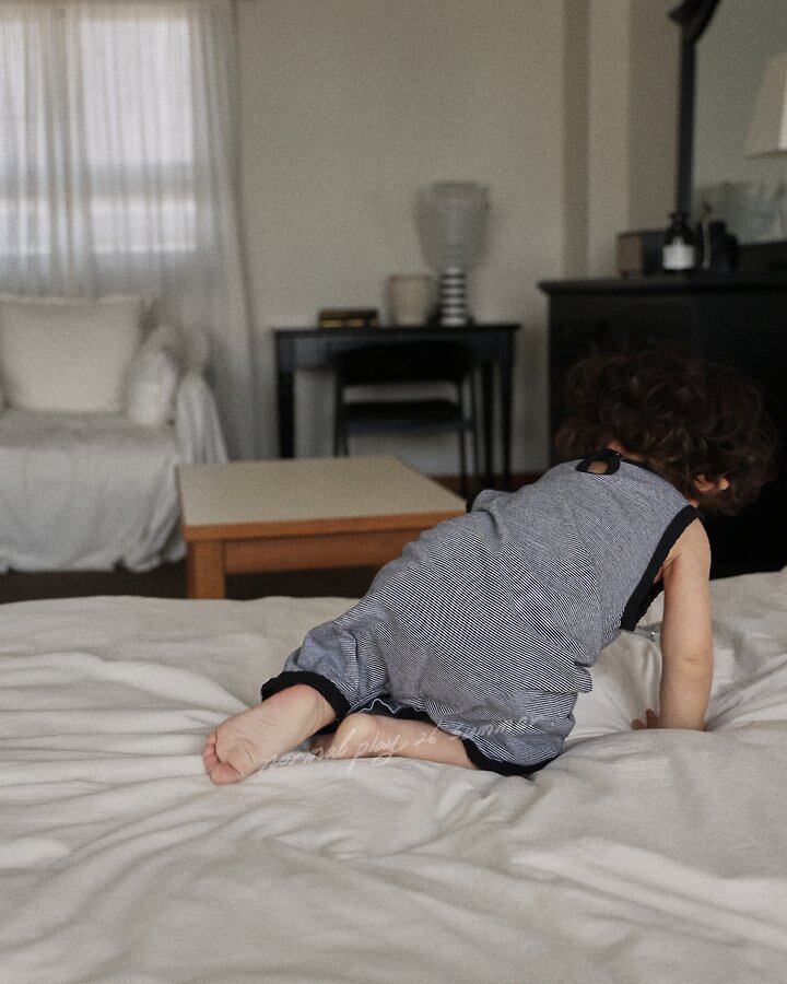 繊細なストライプにカンガルーポケットが愛らしいアクセント。配色ラインと後ろ首のボタンデザインが、お着替えのたびにキュンとしてしまう可愛さです♩ウォッシュ加工済みなので、忙しいママもご自宅で気兼ねなくお洗濯いただけます。