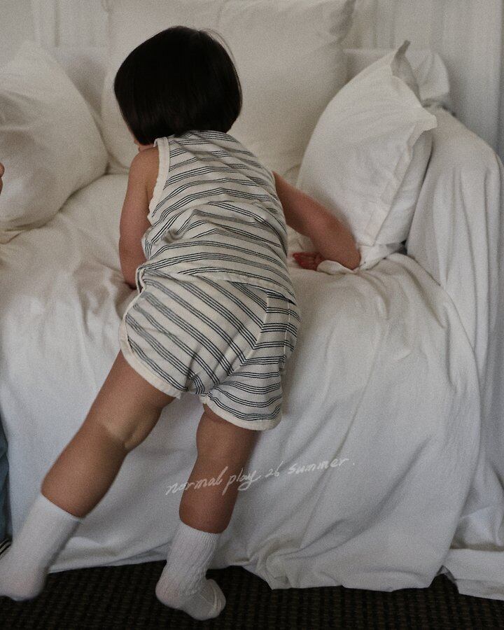 落ち着いたトーンにライン配色が映える、大人顔負けのカジュアルパンツ。セットアップで着れば、忙しい朝のコーデも一瞬で完成!「週に3日はセットアップがいい♩」なんて思っちゃうほど、ママにもお子様にも嬉しい楽ちんお洒落アイテムです。