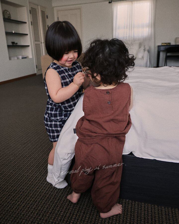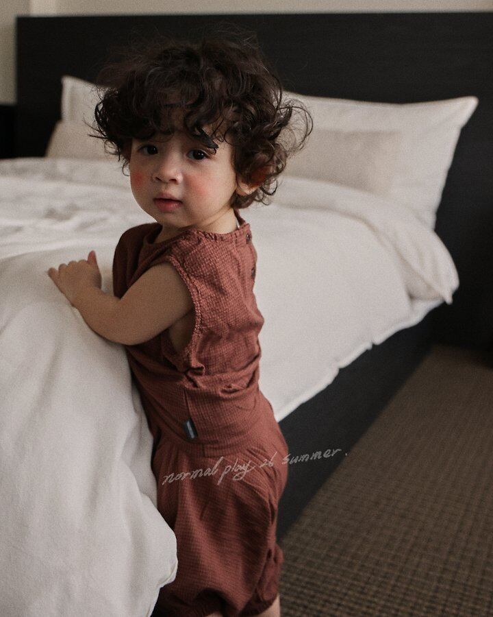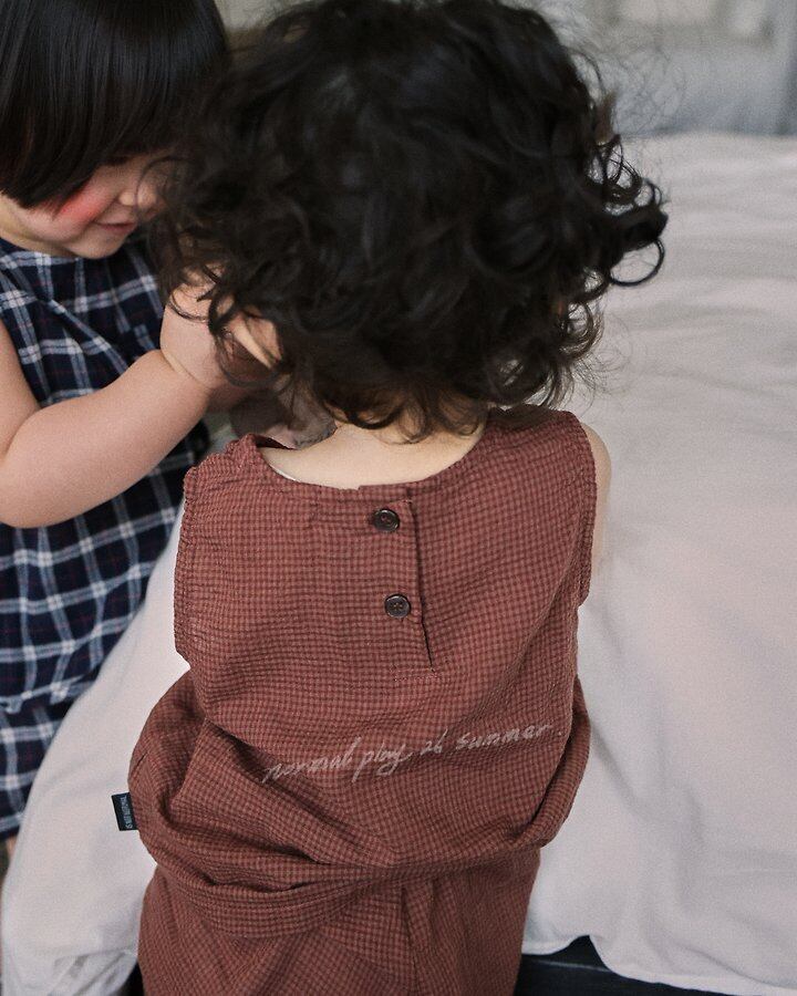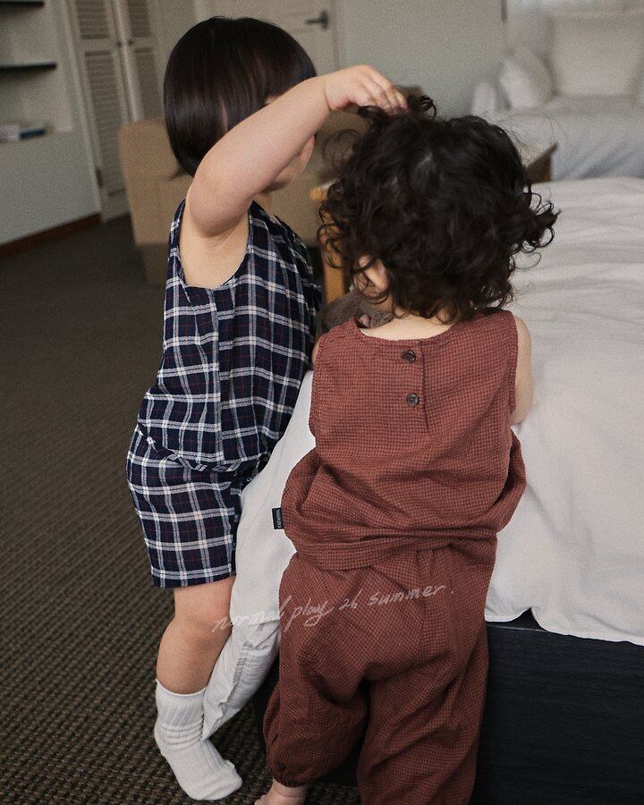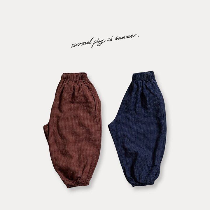 涼やかなサッカー生地のようなチェック柄がたまらなく可愛いジョガーパンツ♩裾が絞ってあるので、アクティブに動く公園遊びや夏休みのバカンスでも、裾を引きずらずにおしゃれに決まります。
