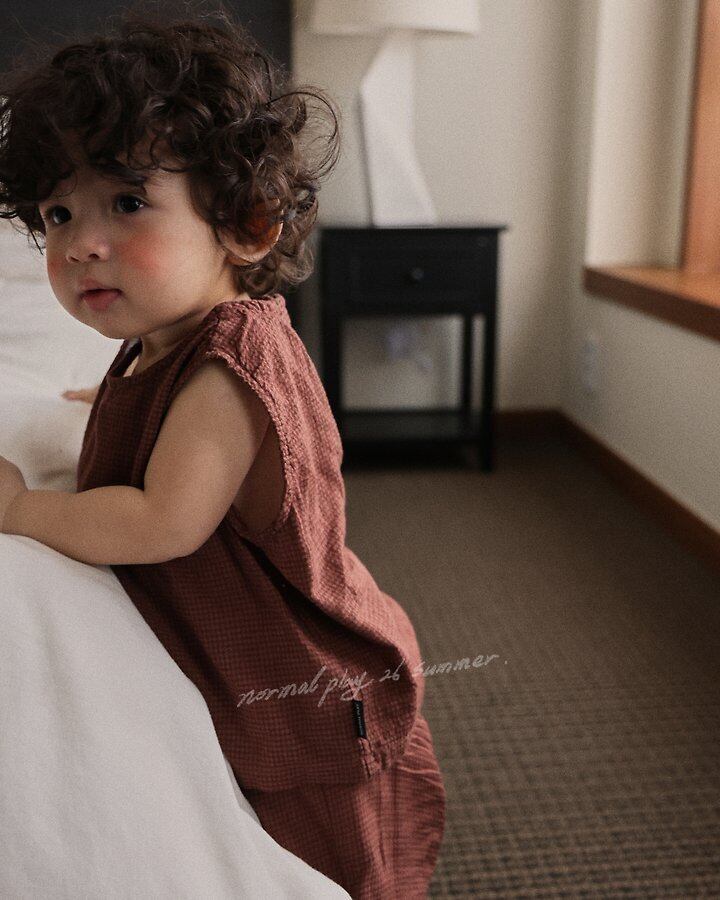 ウォッシュ加工を施した柔らかなコットン素材。汗をかきやすい季節でも肌離れが良く、お洗濯後の乾きも早いのでデイリー使いにぴったりです。