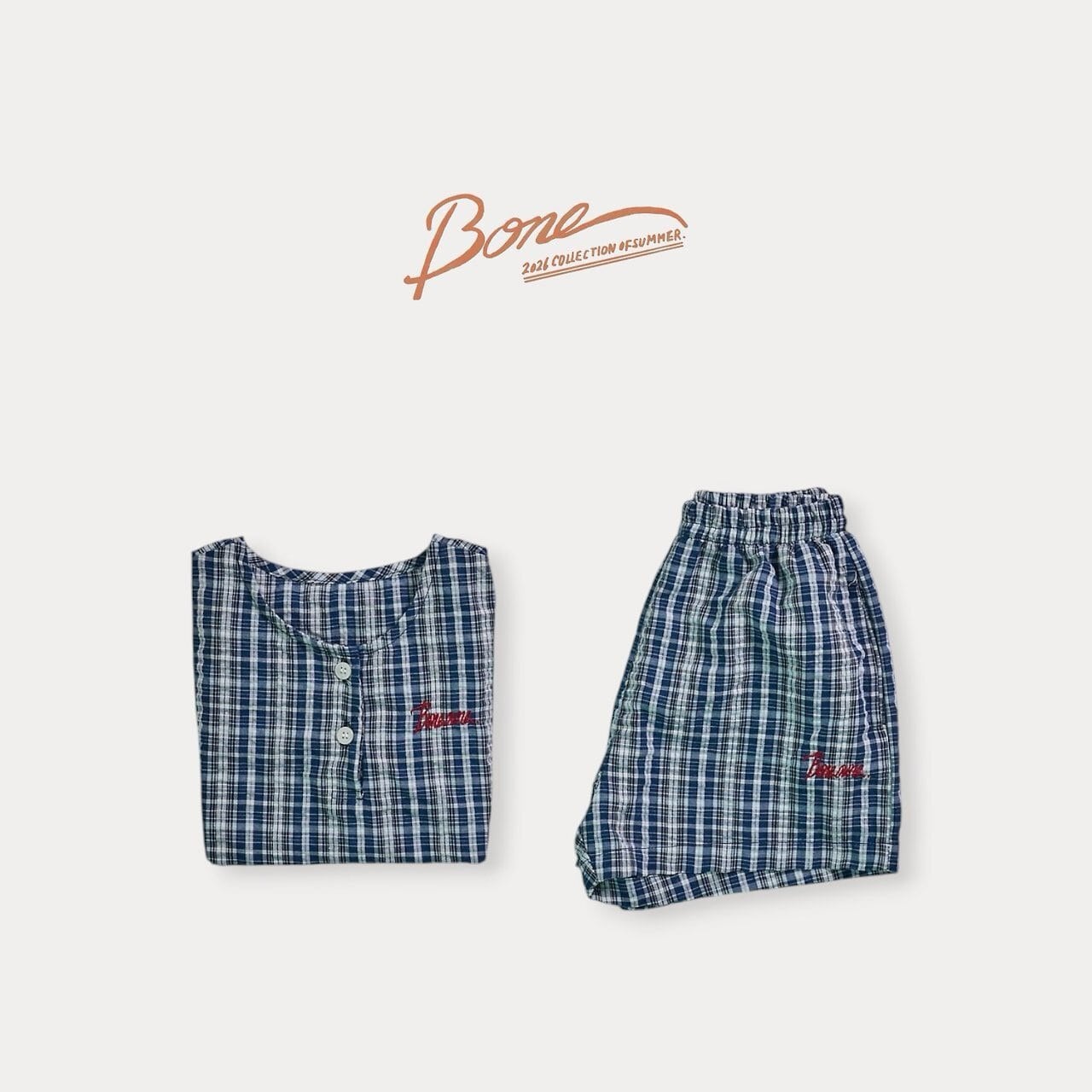 ポコポコとした表面感が涼しげで軽い、サッカー生地(シアサッカー)のチェック柄ショートパンツ♩