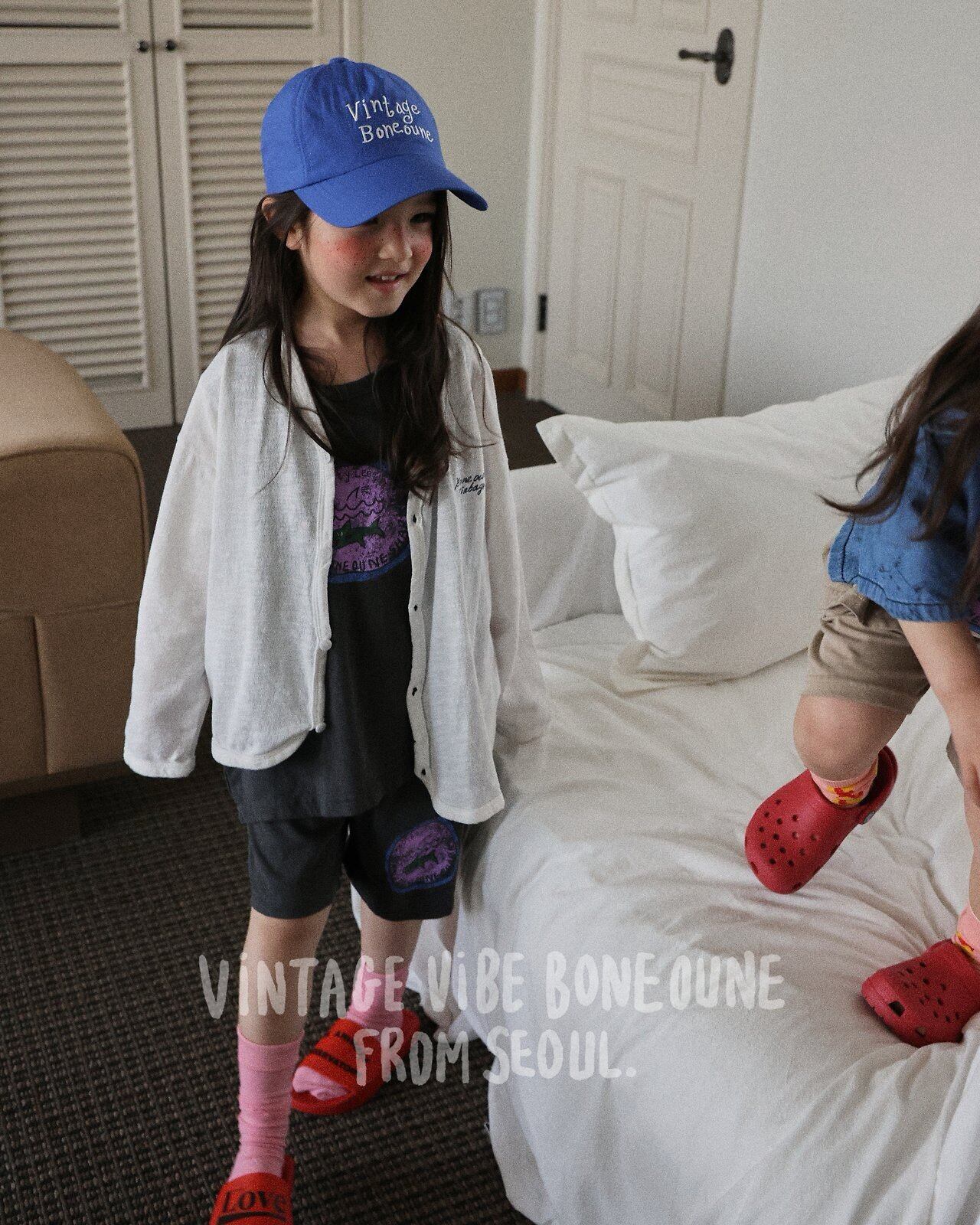 ユニークなサメのプリントと、ピグメント加工特有のヴィンテージな色味がどこにもない「ヒップ」な夏を演出してくれます。真夏の日差しに映える、お洒落が大好きなキッズのための特別感たっぷりな一枚です。
